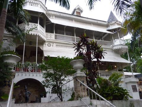 “Stepping into this magnificent gingerbread mansion with its cathedral ceilings, you could feel the lingering presence of legends —painters like Hector Hyppolite, Philomé Obin and André Pierre; dancer and choreographer Katherine Dunham; former First Lady Jacqueline Kennedy; Marlon Brando and Elizabeth Taylor during the filming of “The Comedians;” Charles Addams of The Addams Family; and James Jones, author of From Here to Eternity — to name just a few,” said Port-au-Prince political analyst and former hotel patron Michel Eric Gaillard. “Sipping a glass of rum at the old Acajou bar, you might have imagined yourself seated beside Rolling Stones icon Mick Jagger, or witnessing Graham Greene in deep conversation with Aubelin Jolicoeur. Brushing your hand against its walls, you did so with reverence—closing your eyes to absorb the vibrations, the echoes, the voices of history,” he added. “The Oloffson withstood the 2010 earthquake, its wooden structure flexing with resilience as it stood tall above Port-au-Prince. But it could not defy manmade disaster. Like an old reel of film, it has faded into oblivion.”